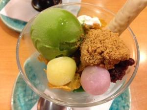 今日からお盆休みの方も多いと思いますが、皆さま、いかがお過ごしですか? 今日はホントに暑いですね〜!(;^_^A 朝から潮見坂にお墓参りに行ったのですが、あまりの暑さに草取りもソコソコにして早々に引き上げましたw なんと四万十市と甲府市で40.7度を観測したんだそうです。Σ( ̄。 ̄ノ)ノ こんな日はお家にいる時も熱中症にならないよう気を付けなきゃいけませんね。 写真はお墓参りの後に立ち寄った『鈴のれん』さんの抹茶パフェ・・・に別注文の蓮餅をトッピングしたモノ♪ 涼しいトコロで美味しいモノ食べるのって極楽デスね。( ̄▽ ̄) |