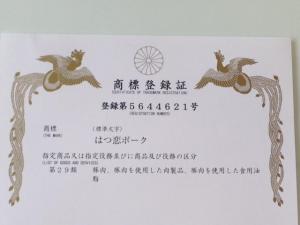 2014-02-10 【はつ恋ポーク商標登録証♪】