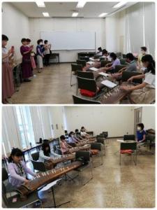 8月26日(土) 「夏休みこどもお琴講座」の4回目を行いました。 最終日の今日は、 総まとめとして「 雀」 「ちらちらと」「ロバさん」 「練習ニ」「さくら」の5曲を練習しました 。「さくら」と「ちらちらと」は 伴奏も入れて、初めて 合奏 しましたが 、皆自分のパートをしっかり弾くことができたと思います 。最後は保護者の前で発表を行いました。どの曲も練習通り、落ち着いて演奏する事が出来、沢山の拍手をもらい、講座を終了しました。 |