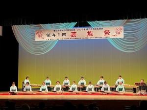 春日井市文化協会主催の 第41回芸能祭が、6月18日 (日)午後1時より 春日井市民会館にて開催されました 。 8団体 参加の中 、みどりね会は琴、17絃、尺八の合奏で 「信濃の抒情」 を演奏いたしました。 練習を重ね 、お手伝いをして下さった方々のご協力もあり 、本番では皆で息のあった演奏をすることができましたことを嬉しく思いました。 |