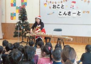 11月24日(木) 尾張旭市立 川南保育園にて 今年で3回目の『クリスマス コンサート』として演奏に行ってきました。 園児約120名と先生方と一緒に クリスマスソングや童謡をお琴に合わせて 歌ってもらい 楽しい一時を過ごすことができました。 かわいい子供たちに「お琴」に親しんでもらえる機会がふえるといいですね! |