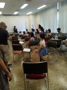 7月最後の土曜日31日から、文化協会主催の市民講座が始まりました。 夏休み中の子供のためのお琴講座で募集したところ、.一年生から六年生まで、14名の参加がありました。 初回は、初めてお琴にふれる方たちに、琴を弾くための基本、姿勢、かまえ方、爪のあてかた、弾き方を 「たこたこあがれ」の曲を使用して身につけていただきました。 最終日には、子供さん達の演奏発表ができるように講座を進めたいと思っています。 |