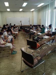 とうとう、愛知県にも 8月27日に緊急事態宣言が発令されました。 幸い規制は30日からという事で無事、4回目の講座は開くことができました。 最終回はまとめとして、各グループ毎の練習の後、家族の方達を観客に発表会をいたしました。 演奏は各グループ共 [たこたこあがれ] [練習1] [雀] 他に 1、2年生は[チラチラと] 3年生から6年生は[さくら] の4曲を発表しました。 姿勢よく、大きな音でリズムも正確な、立派な発表でした。 皆さんとても優秀で、四回の講座でめざましい成果を出してくださいました。 この方達が、引き続きお琴に興味を持ち続け、お琴を弾き続けてくださることを望みながら、今回の講座を終了いたしました。 |
