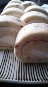 そして、食べる前に生クリームとこちらも自家製♪りんごとシナモンのジャムを添えて~(^o^)ちょっと早いですが、クリスマスみたいなロールケーキになりました(о´∀`о)