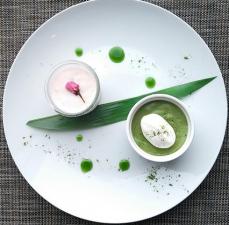 ほろ苦い抹茶の味で桜あんムースと相性バッチリ☆の抹茶のブランマンジェ♪