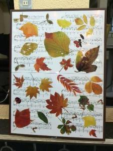 好みの楽譜とキレイな葉っぱのデータを取り込んで組み合わせただけ。